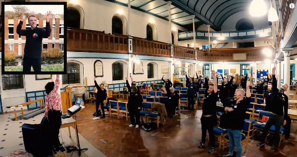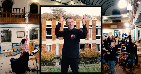 Brian Butler sings along at home with the Rainbow Chorus online Xmas concert
