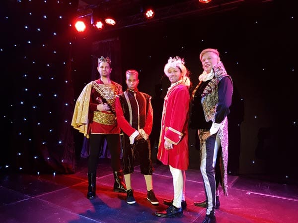Russell Keith (Prince Willy of Cockermouth) a former lead vocalist in the West End production of The Jersey Boys gives confidence and reassurance to all those around him and along with Jack Seager (Fair Enuff and Princess Lolita),who played the lead role in Billy Elliot in the West End for four years the three together give real vocal backbone and musical credibility to this show.