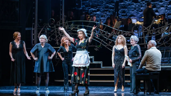Rob Houchen led a testosterone-filled ensemble for Tonight, and then the tone lightened for Gary Wilmot as a reluctant rehearsal/audition pianist accompanying not only Julia McKenzie, but also Friedman, Peters, Bonny Langford and a further clutch of divas in a delicious high-kicking rendition of Broadway Baby. When asked to play the Sondheim tune, Wilmot sharply replies: “ I’ll need all my fingers then”.