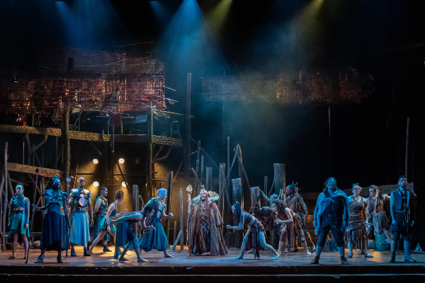 Gianluca Cucchiara and Andrew Whelan ( music and lyrics ) have created a mythical love story with heavy climate change resonances that pounds and soars,with its tribal rhythmic dances- it’s a show that entrances and sometimes baffles. Occasionally the colloquial, darkly comic book by Michael Conley seems at odds with the overall aura of other-worldliness that director Adam Lenson and designer Libby Todd have created in this strange land of Vanara.