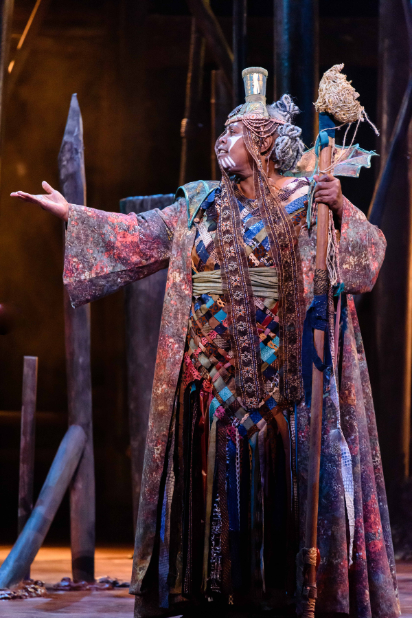 But it seems we are wrong – the weirdly comic prophetess The Oroznah( Johnnie Fiori) tells the wayward tribes that Vanara is not the forest, not a place at all: it is a people. Make of that what you will. The storyline is straightforward -as they move towards a long night of darkness, the Pana – servants of the sun – must steal the secret of fire from the Kogalisk – servants of the moon.