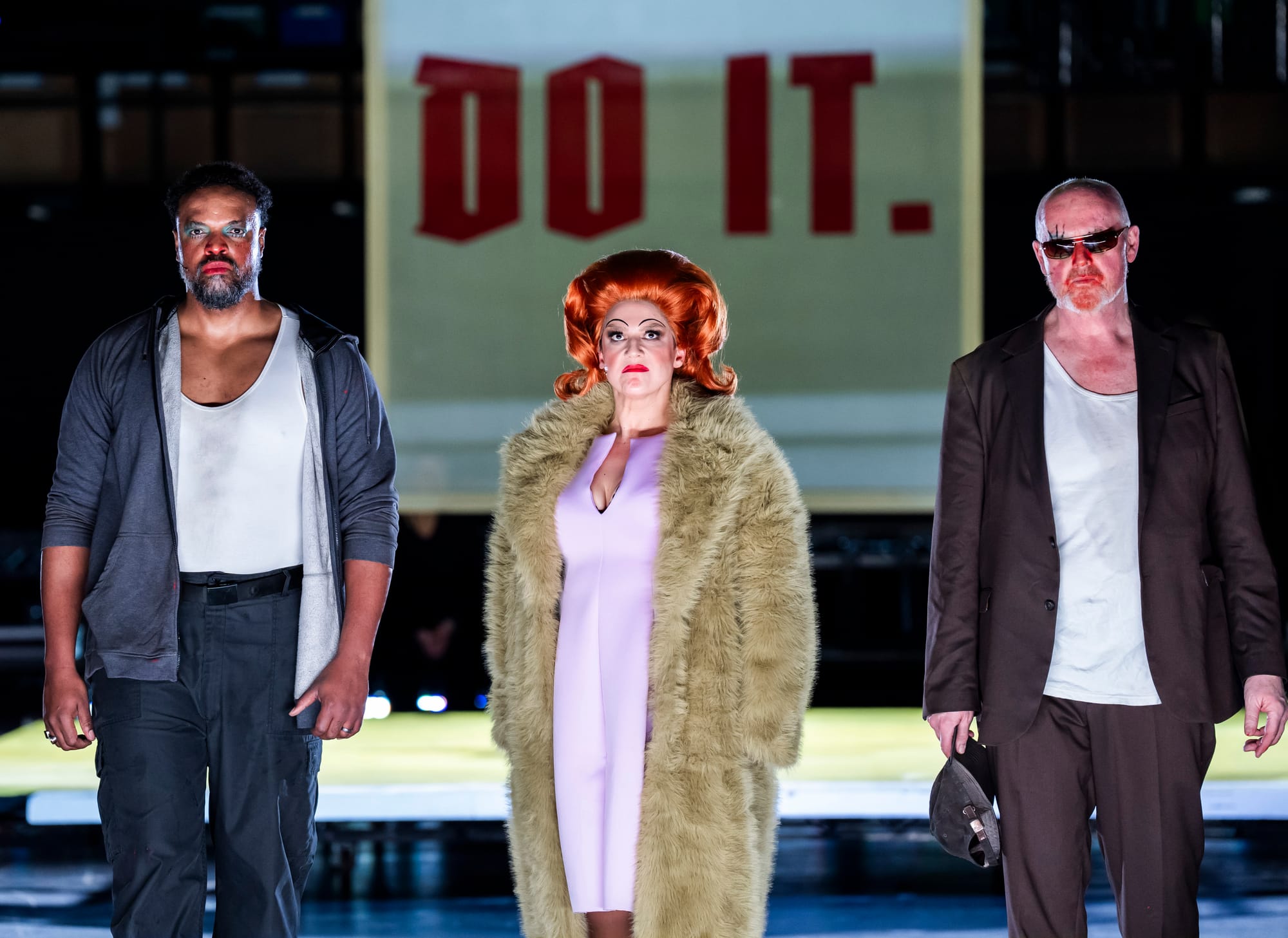 One unavoidable complaint: for the final twenty minutes, unfiltered horizontal stage lights blazed directly into the side stalls -both sides, meant to backlight the full company on stage (?), they still burned through. Rows of the audience sat with eyes shut, heads aching, reduced to listening. The ENO must fix this before the remaining shows. What is otherwise a bold, queer-spirited and bracingly relevant evening deserves to be properly seen — all of it.