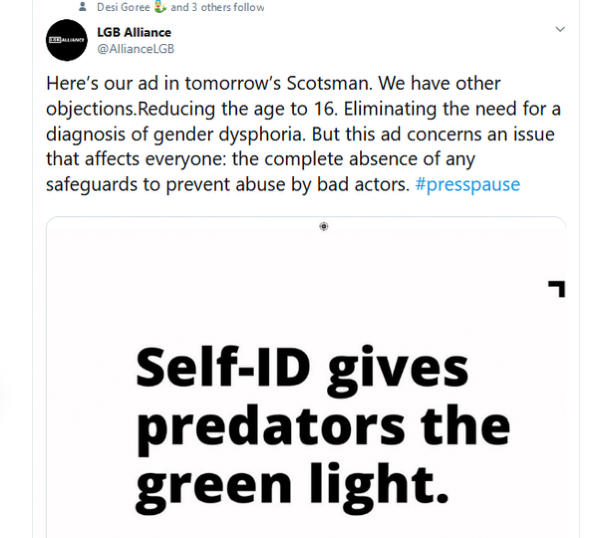 We call on our colleagues in the mainstream media to refuse to platform the view of the LGB Alliance