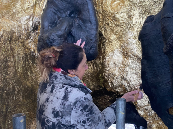Elpida proposed turning the felled tree into a memorial, preserving what remained and adding a gilded interior surface to symbolise how much local people value the tree. Elpida has donated much of her time pro bono for the creative work because she believes so passionately in the project.