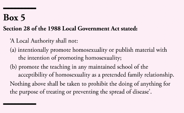 Despite unprecedented protest, the act containing Section 28 was passed shortly after the Conservatives election win.Section 28 was the government`s response to increased calls for equality by lesbian and gay activists. The legislation remained active until 2000 in Scotland and 2003 in England Wales when it was repealed. “I am proud to have moved the clause that abolished Section 28 once and for all” said Ed Davey, acting co-leader of the Liberal Democrats. “But we still have far to go. From trans rights to tackling the persistent discrimination faced by the LGBT+ community: the fight is far from over.”