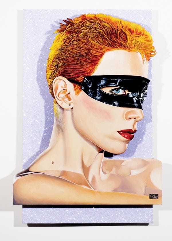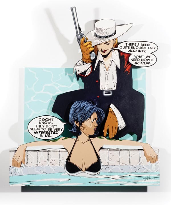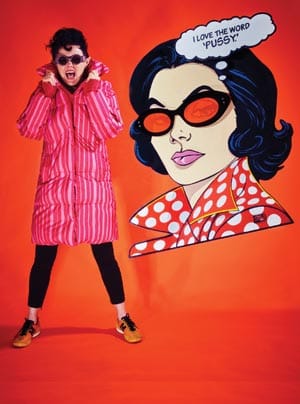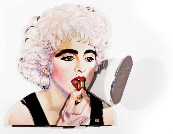 Pop Art has a clear impact upon her work, but when pressed her inspirations straddle the decades: “Warhol, Hockney, Van Gogh people who broke the mould, who were ahead of their time”. Before I have chance to ask if she’s aware that all her listed influences are male she fixes me with that excited tractor beam of a stare to tell me “in my past life I think I was a man, I know I was a man. Because in this life, I think like a man”.
