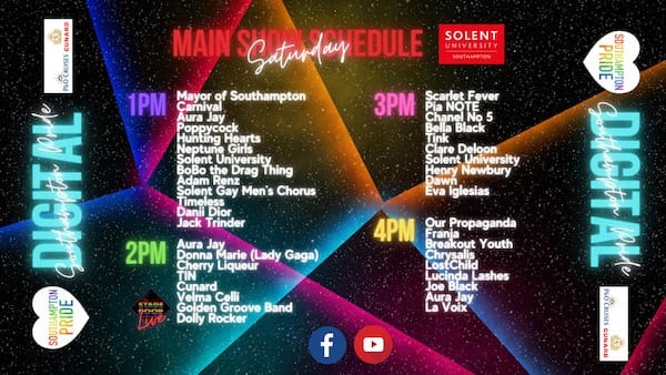 Southampton Pride has announced the full line-up for Southampton Pride Digital Festival, which is to take place on Saturday, August 29 from 1pm.