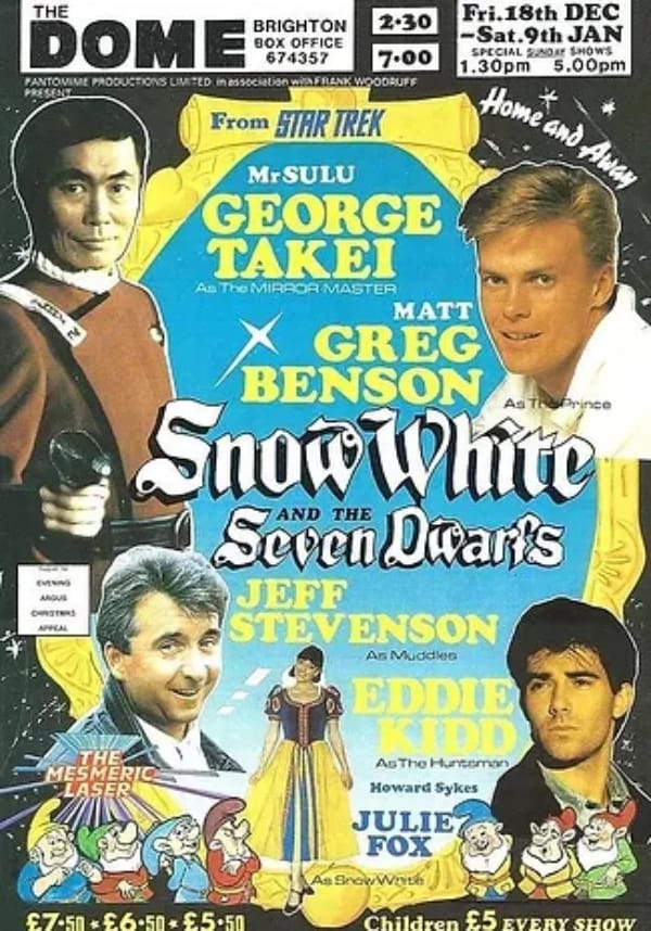 And we move on again: a fact you probably don’t know is that George starred in panto at Brighton Dome in 1993/4 as the villainous Mirror Master in Snow White, and he still has a love for the city.