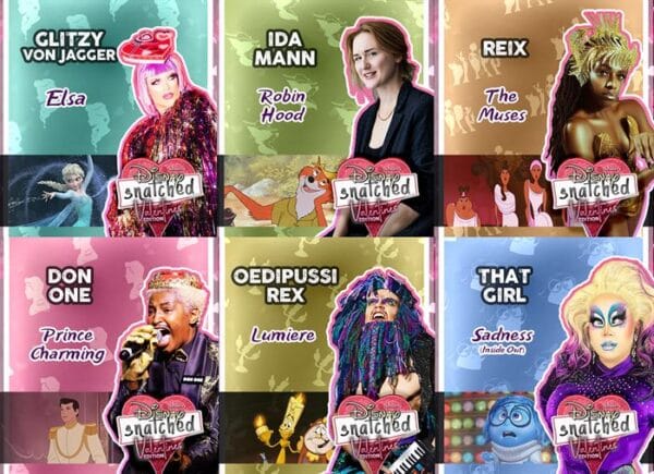 Each event has up to six drag contestants pitted against each other as they do their best to impersonate and queer-up some of Disney’s iconic characters. The audience vote and the final two lip sync for that night’s title of Disnay Snatched Champion.
