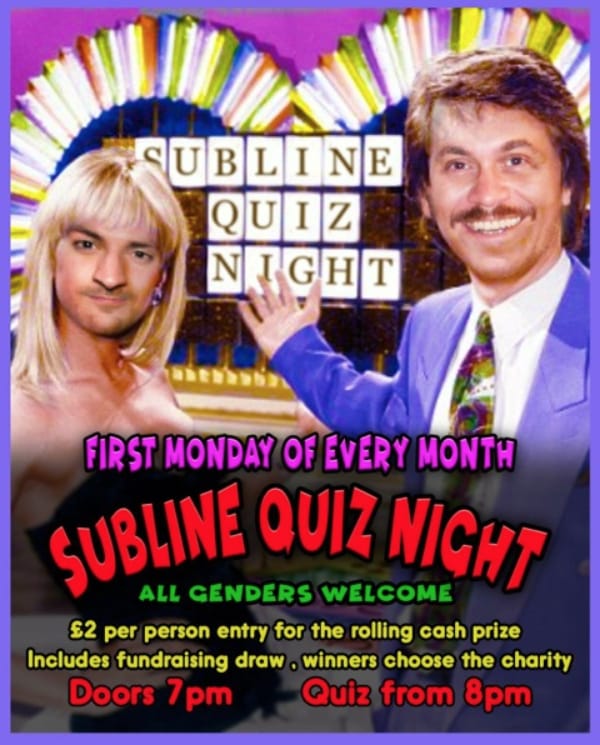 Subline, Brighton’s subterranean club, will be holding their monthly Quiz Night (all welcome!) on Monday, January 6 from 7pm (quiz at 8pm) with funds this month going to the James Ledward Memorial Fund, part of the Rainbow Fund and specifically ring-fenced for local homelessness charities.