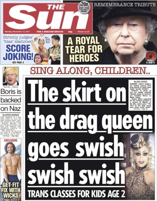 “The paper’s front page headline ‘The skirt on the drag queen goes swish swish swish: Trans classes for kids aged 2’ pokes fun at the issue and ignores the very serious reasons why talking about gender fluidity from an early age are so crucial.