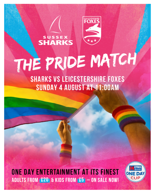 Sussex Cricket recently announced that this fixture has been selected as the club’s first ever Pride Match and will be the first ever cricket event officially endorsed by Brighton & Hove Pride. All profits raised from the match will be split between the Sussex Cricket Foundation and the Brighton Rainbow Fund.