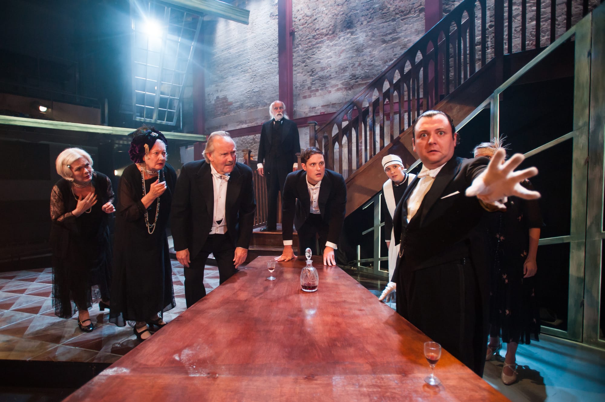 The plot is as creaky as Cherry Truluck‘s mostly wooden, sparse yet effective set. Sir Hector is an old letch who’s come across a pretty shop girl and has invited her to his London home for supper. Meanwhile, Warner the maid (played perfectly by Sarah-Jayne Butler) has mixed up her instructions and also invited Mrs Frush (Joanna Wake), the old lady who’s just bought Thark, a haunted pile in the country, from Sir Hector, along at the same time.