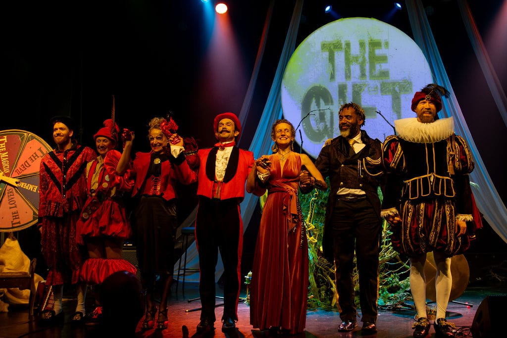 Queer audiences will resonate with its masterful navigation of consent and permission. These are clowns in the truest theatrical sense—skilled improvisers who read rooms with extraordinary sensitivity, creating containers where vulnerability becomes possible without coercion. There's something profoundly queer about the evening's architecture: the way it honours chosen family over blood relations, celebrates non-traditional ritual over commercial obligation, and finds the sacred in the silly. The pagan-inflected, Yuletide festival aesthetic—styled as a fantastical Frost Fair, loosely threaded through tarot symbolism—provides just enough thematic structure to create coherence while remaining gloriously porous.