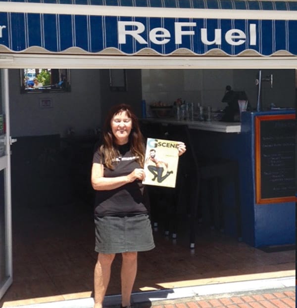 She was featured in Gscene back in January 2017 on account of her distributing the magazine in Spain, where she had a flat just down the coast from Benidorm. “We used to go there for entertainment. There was a very nice gay café on the seafront and they said they got people in from Brighton and I said I must bring Gscene over for them. I used to take five issues each month. I told James I had been doing it for three years and he ran the little article.”