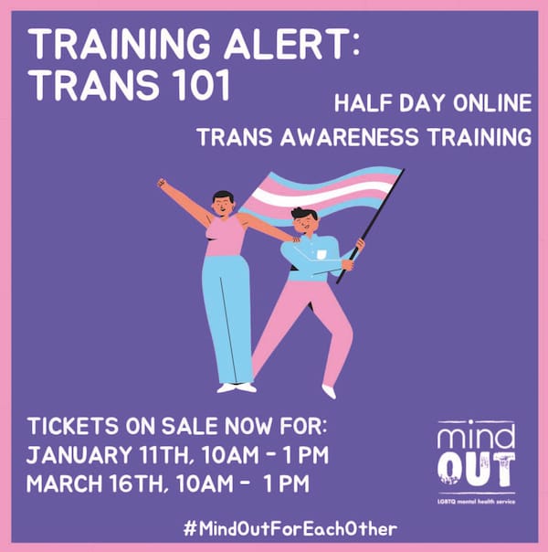 LGBTQ+ mental health charity MindOut is to run its Trans 101 course online tomorrow (Tuesday, January 11).