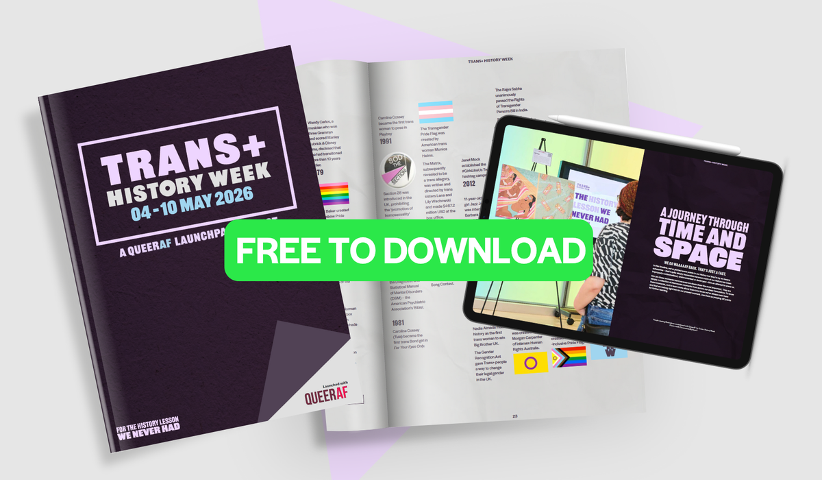 This year’s Trans History Week is supported by a creative partnership with QueerAF, commissioning work from 20 Trans+ creatives across writing, audio, visual art and digital storytelling. The collaboration aims to document history while also creating paid opportunities for trans artists and journalists to tell their own stories.