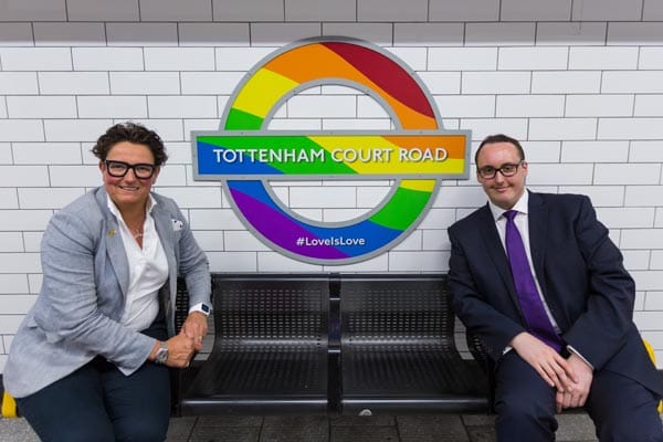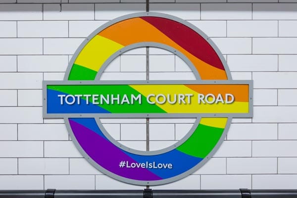 The bold new design highlighting #loveislove can be seen above the Oxford Street entrance of Tottenham Court Road station and has been incorporated into a number of rainbow roundels at Tottenham Court Road, Oxford Circus and Piccadilly Circus Tube stations.