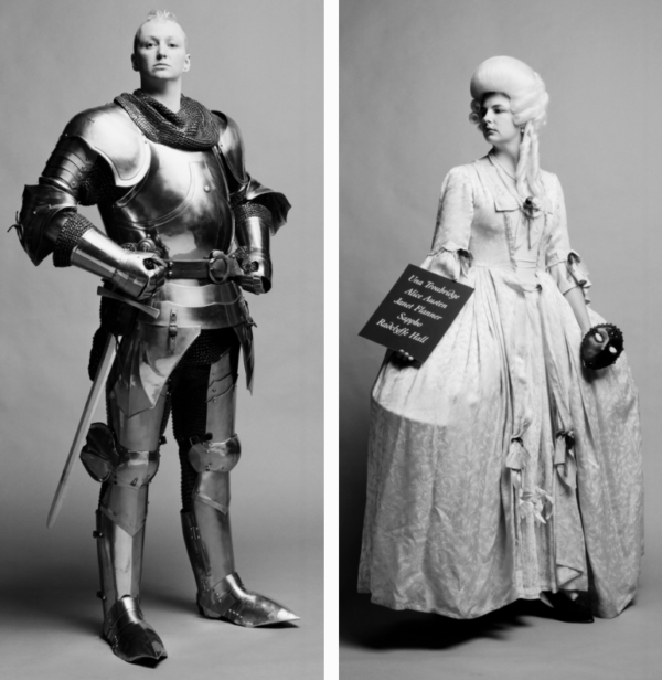 The Knight’s Move by Tessa Boffin (1960 – 1993) unapologetically challenges heteronormative representations of historical and mythological figures. The monochromatic works reimagine the Knight, the Knave, the Angel, the Casanova and the Lady-in-Waiting as lesbian protagonists.