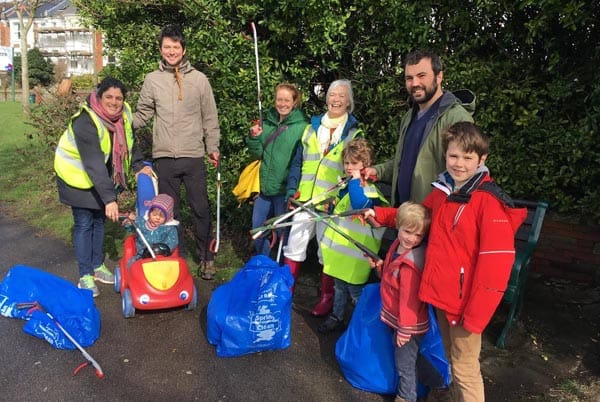 Volunteer litter pickers clean up the city