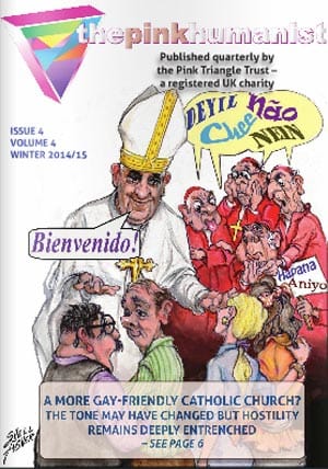 The magazine, published quarterly by the UK gay charity, the Pink Triangle Trust, also carries a particularly gruelling feature on AIDS. In “AIDS: then and now”, Barry Duke, editor of The Pink Humanist writes of how his life was torn apart by HIV in the 1980s, and young American Brandon Griewank rec