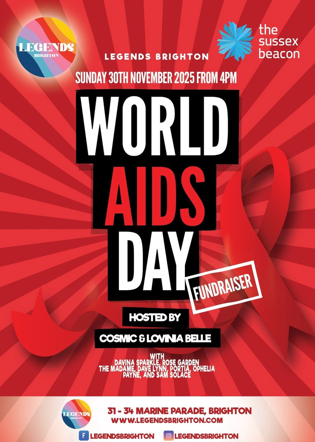 Legends Brighton's World AIDS Day fundraiser on Sunday, 30 November will raise funds for local LGBTQ+ charity, the Sussex Beacon.
