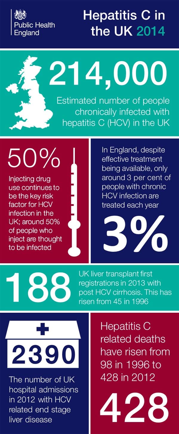 New figures from Public Health England (PHE) reveal hospital admissions, liver transplants and deaths from hepatitis C (HCV) have all risen in the UK. Hospital admissions from hepatitis C-related end stage liver disease have risen from 608 in 1998 to 2,390 in 2012, while deaths have risen from 98 in