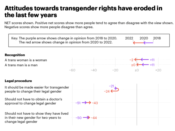 YouGov poll reveals an erosion in support for trans rights since 2018