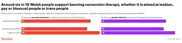 New YouGov polling shows majority support for banning conversion therapy for both sexual orientation and gender identity in Wales.