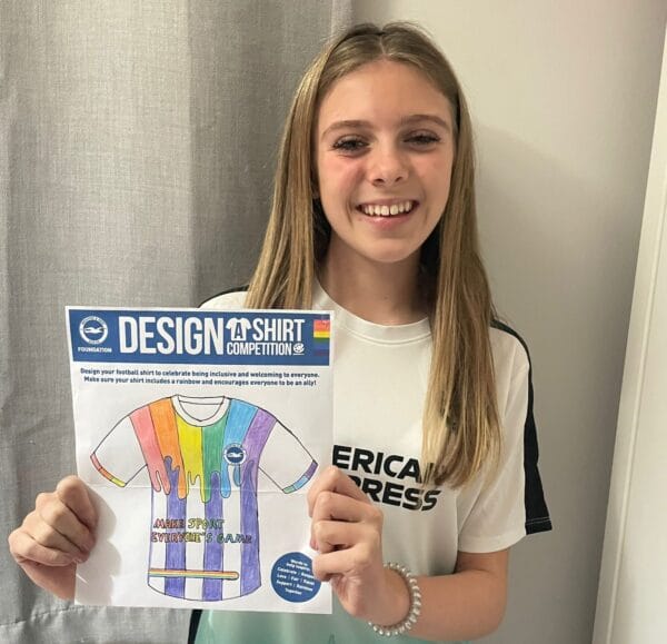 Brighton & Hove Albion Foundation (BHAFC Foundation) recently launched a competition inviting local kids to send in their most colourful, inclusive, and supportive shirt designs to promote Stonewall’s Rainbow Laces campaign and show support to the LGBTQ+ community.