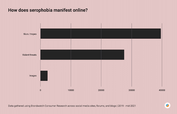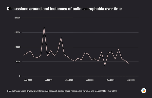 - Instances of and discussions around serophobia online have decreased 21% since the beginning of the pandemic in March 2020.